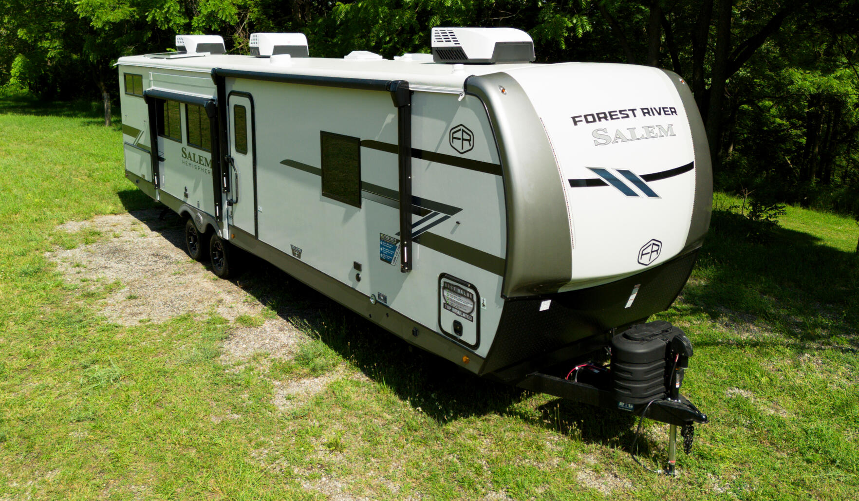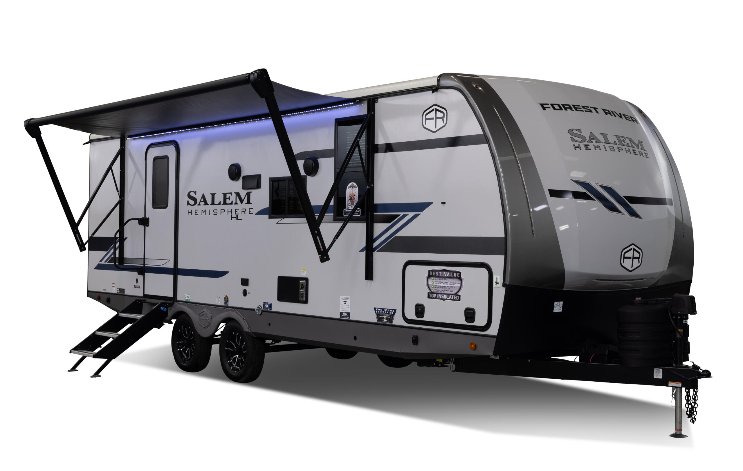 Touting 3 slide-outs, the 308RL is the most spacious Hemisphere Travel Trailer for coupes. Enjoy a breath-taking view of your campsite in the living room, or relax in the wide-open bedroom. Past the bedroom you'll find a WALK-IN wardrobe, and washer/dryer prep area spacious enough for separate washer & dryer. (This is the only model without a windshield, because we didn't think your laundry would care to see outside).